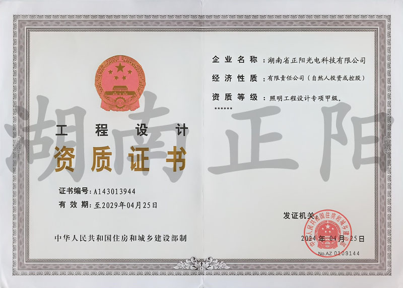 • 照明工程設(shè)計(jì)專(zhuān)項(xiàng)甲級(jí)資質(zhì)